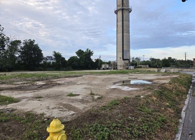 Eon held up a large photo of the former MERC waste incinerator that occupied the lower end of Lincoln and Pearl streets for nearly three decades.