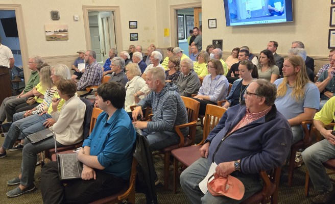 Several opponents of UNE’s proposed pier location attended the Biddeford Planning Board’s meeting when the project was approved in a 3-2 vote (Seaver photo)
