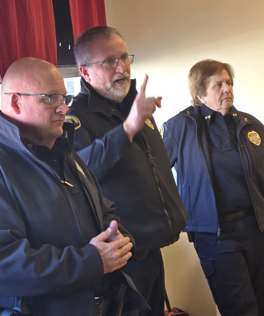 Biddeford Police Chief JoAnne Fisk, Deputy Chief Steve Gorton and Lt. Normand Allaire attended the event, fielding a variety of questions from the public and then later posing for photos with folks who were anxious to have their picture taken with a uniformed officer.
