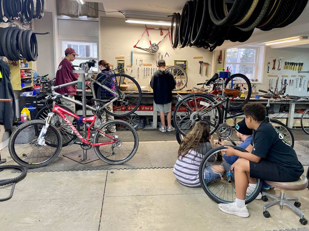 Students learn valuable life skills while repairing and rebuilding bicycles at the Apex Youth Connection facility in Biddeford (Courtesy photo)
